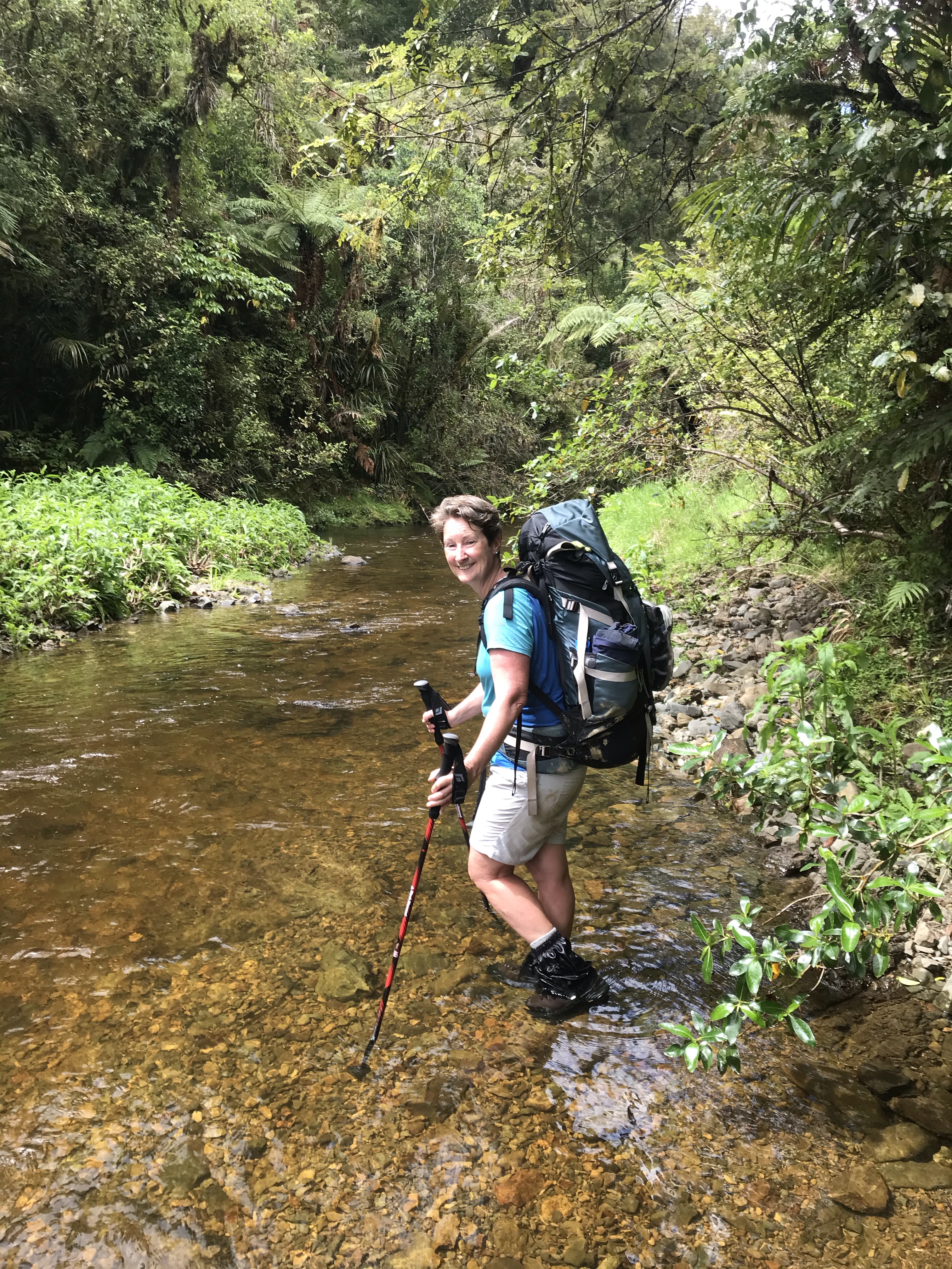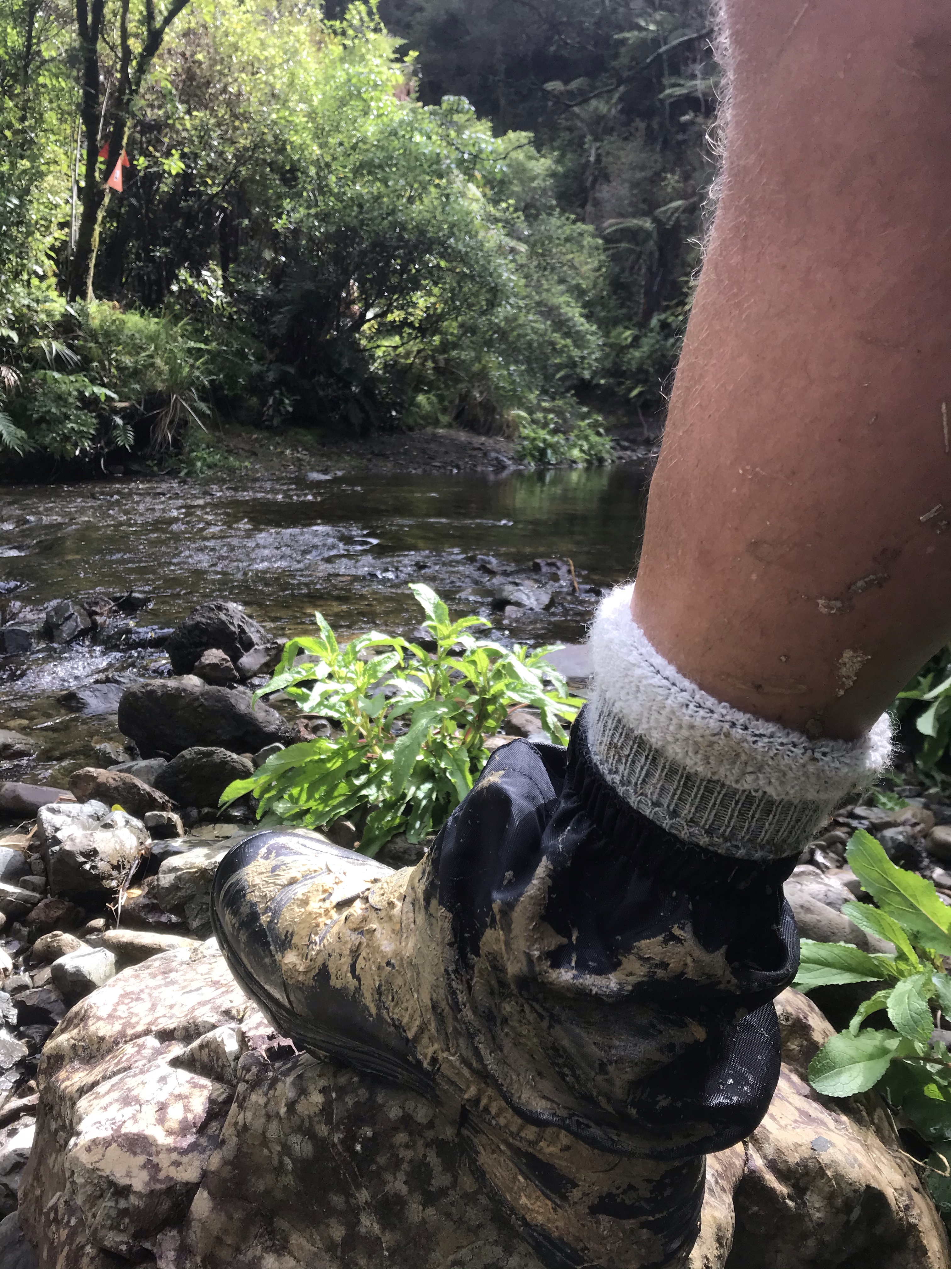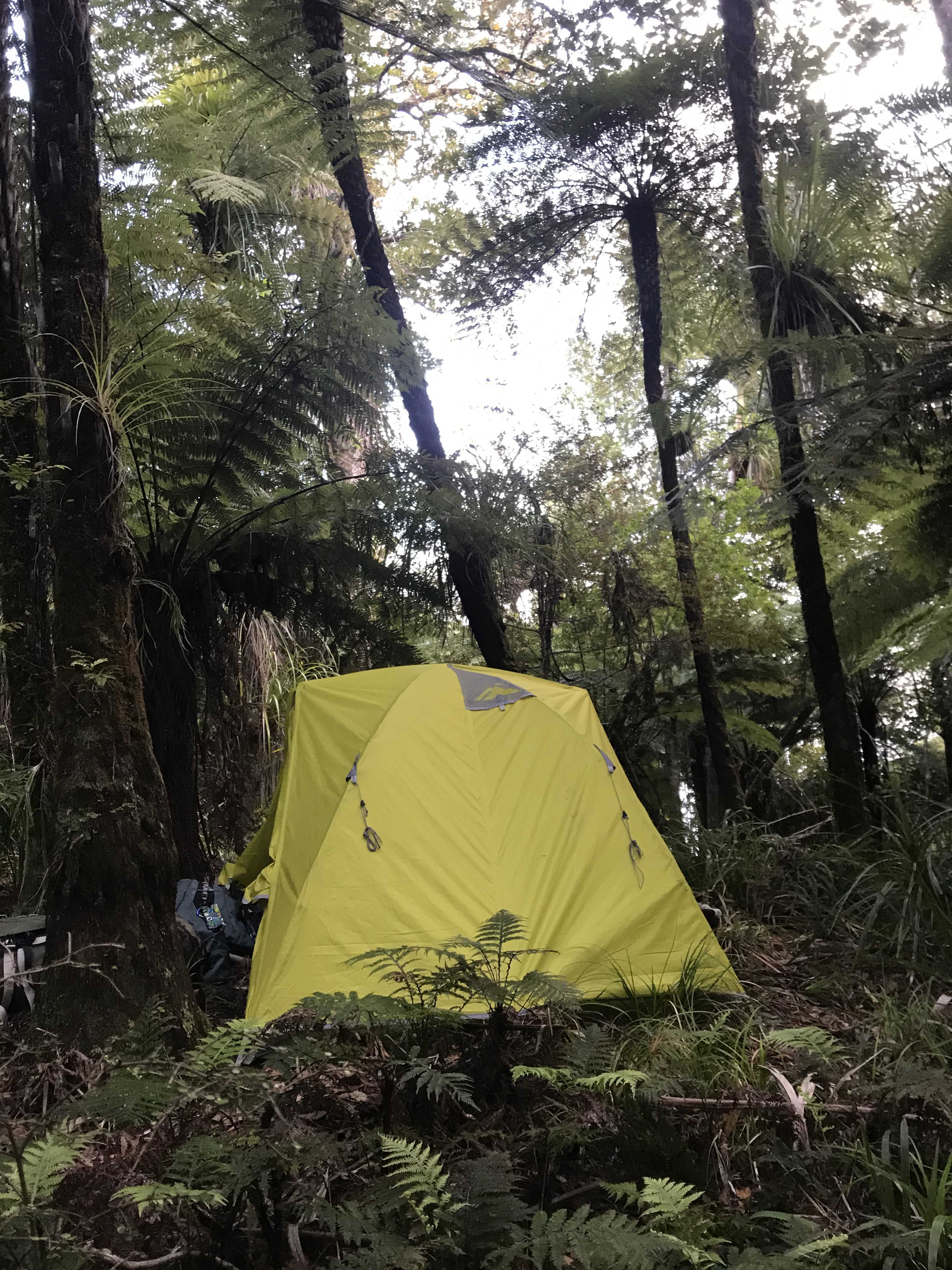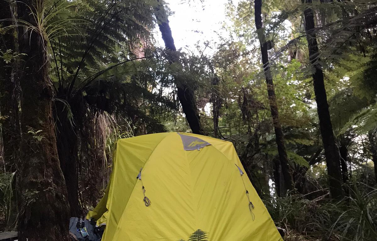 The following day looked like a massive challenge on paper, and it didn’t disappoint. It started off with a controlled slip-slide down a citadel of mud before entering the Puketi Stream. Truth be told – this was a beautiful section of the trail. A cool, clear creek babbling through a gorge with stunning tree ferns and regenerating bush made for a lovely, if tricky, walk. What followed was the stuff of nightmares. An insanely muddy and slippery track alongside the river which had us stretched to our limits. I fell a number of times and on one occasion nearly ended up back in the river. It took us three hours to traverse 3.8 km and when we finally joined the Puketi Forest track, we were spent. We trudged on for a bit but realised we were still 12km from our objective and needed to camp. We set up the tent on a flatish bit of ground and fell asleep to the sounds of the surrounding forest.