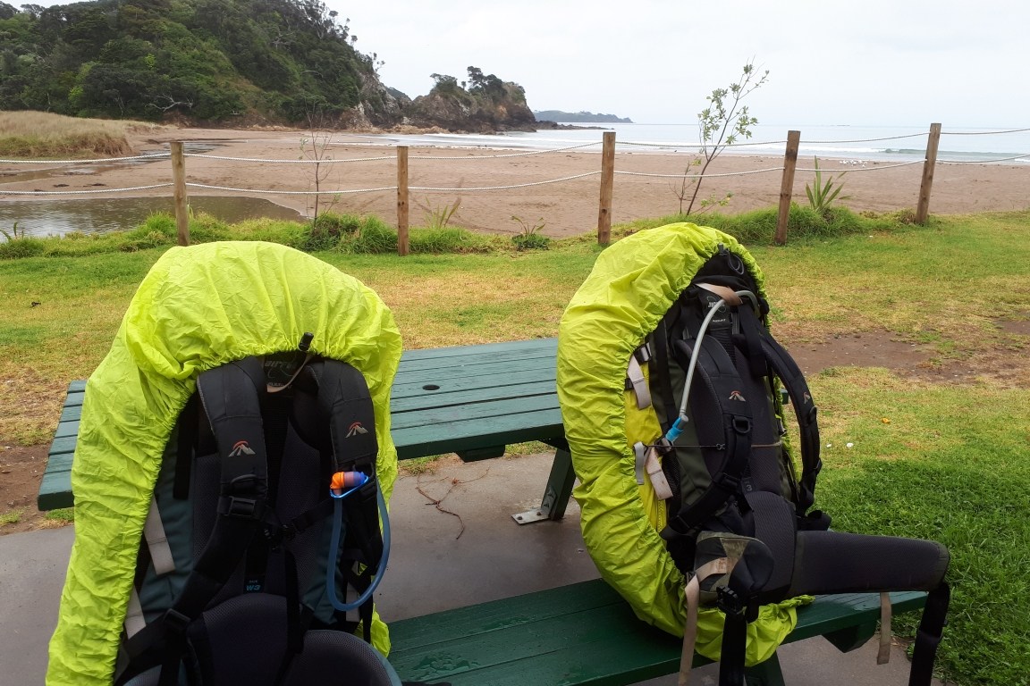 We watched the All Blacks semi-final with a guy named Fish. We arrived at his place in the tiny and beautiful settlement of Helena Bay via a straitforward road hike of 12km and so we arrived at the relatively early hour of noon. Despite being forewarned by a text of our impending arrival, Fish looked slightly non-plussed but showed us to our cabin with en-suite. Fish’s place was a riot of caravans and 40-foot containers and the en suite to our port-a-cabin was cleverly constructed from one third of a juxtaposition Ed container. My original synopsis of Fish as a taciturn loner proved spectacularly incorrect, when he popped round and invited us to tea, which, knowing which freeze-dried meal we had in our packs, I immediately accepted. We headed over to his place and found a couple of caravans linked by a DIY annex which housed both a full size spa bath as well as a woodburner dominating the lounge room. Soon we were having some cold beers with his mates Gazza, Pete and Jock who entertained us with stories of the region and possum hunting back in the day. Just when i thought Gazza and Pete were getting pretty pissed they stood up and announced they were going night-fishing. The rest of us headed indoors for some scrumptious pork belly and the telly was on with the warm-up for the game. Casey the immense Labrador cross dominated the only couch and Fish ignited the woodburner to ward off the spring chill. Confounding any statistical norm another fella called Jock turned up and proceeded to yell at the TV as the game had eventually kicked off and NZ were immediately under the cosh. It struck me as being both convivial but slightly surreal, bound as we were in our support of NZ but at the same time being so different. We meandered to bed, mindful of the physical challenge that awaited us the next day but buoyed by the selfless generosity imbued by our host, Kevin Fish.