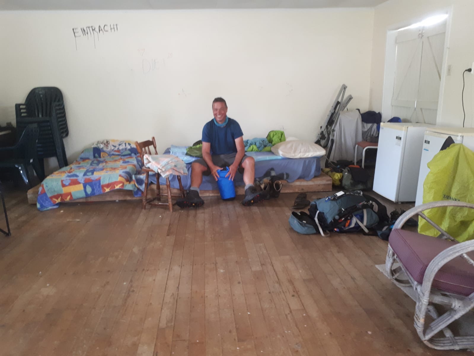 We were grateful to get a lift the last few kilometers to Stillwater. It was bucketing down and we were drenched. I wrote in a previous post about a potential precipitation comeuppance and here it was. The strange lady at reception told us that TA walkers could sleep for free in ” the hall”. We found said hall and staked our claim to the least grubby mattress by laying out our sleeping bags. If there are any filmmakers searching for a place to film a sequel to Deliverance, they could do worse then the Stillwater campground. A beautiful yet eerie place that time appears to have forgot, with bearded gnome-like men scuttling about doing tasks of questionable importance. We were joined in the hall by bearded, quiet Kiwi and a lithe and quiet Canadian – the ensuing banter could only be described as parsimonious.
